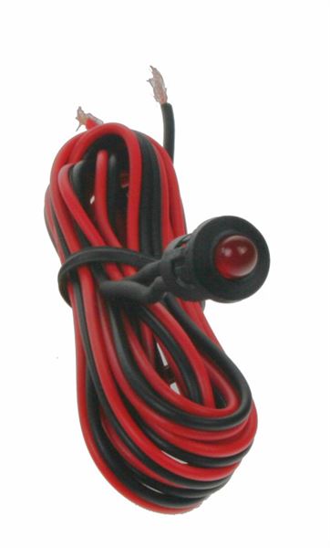 Samoblikací kontrolní LED dioda s objímkou a kabelem 80 cm červená. Stačí připojit na 12 V a sama bliká, vhodná jako imitace autoalarmu.