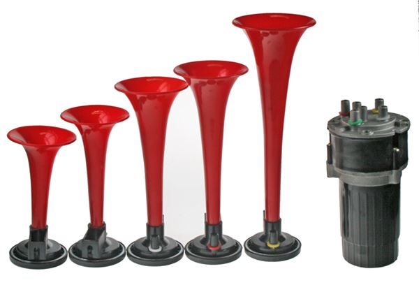 2-trubková fanfára poháněná vzduchovým kompresorem dodávaným v sadě.Trubky jsou pochromované. V sadě jsou dodávány také hadice a drobný montážní materiál.