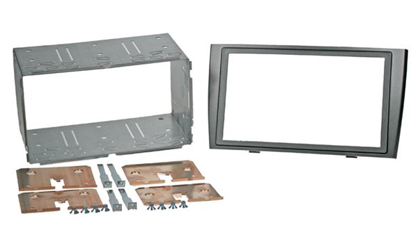 Plastový adaptér s kovovým rámečkem slouží pro montáž neoriginálního 2DIN autorádia do vozu.