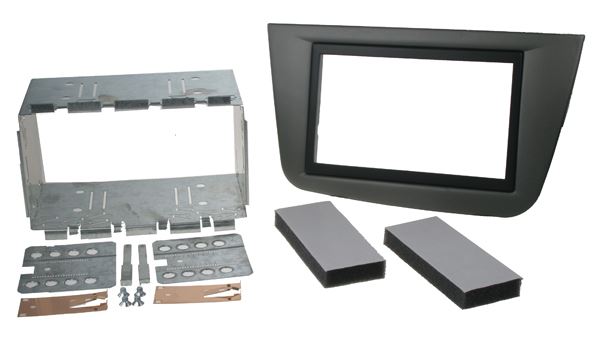 Krátký popis Plastový adaptér v antracitové barvě + kovový rámeček slouží pro montáž neoriginálního 2DIN autorádia.