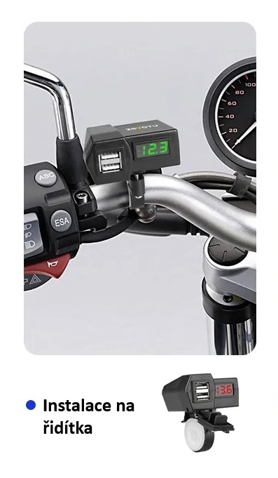 2x USB nabíječka a voltmetr s vypínačem, vhodné např. pro motocykly, čtyřkolky a jiné.
