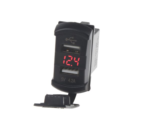 2x USB zásuvka s voltmetrem "Rocker"