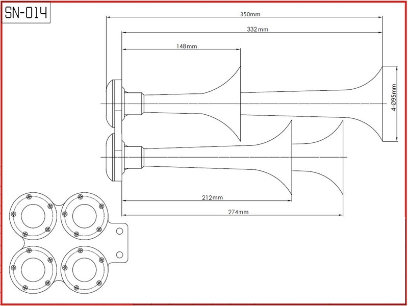 Krátký popis 4 - trubková fanfára určená pouze do vozidel s vlastním rozvodem stlačeného vzduchu. Pěkný design i