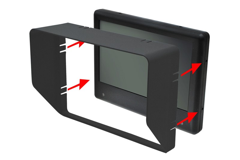 Balení obsahuje univerzální stavitelný držák, protisluneční clonu a dálkový ovladač.