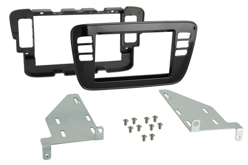 Sada obsahuje: Plastový adaptér 2DIN, boční kovové úchyty, plastový box pro ovladače topení, instalační materiál
