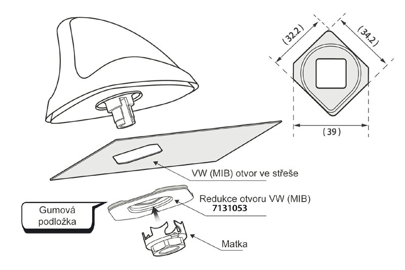 pro automobily s anténou umístěné v zadní části střechy s otvorem 32,2x34,2 x hloubka 39mm
