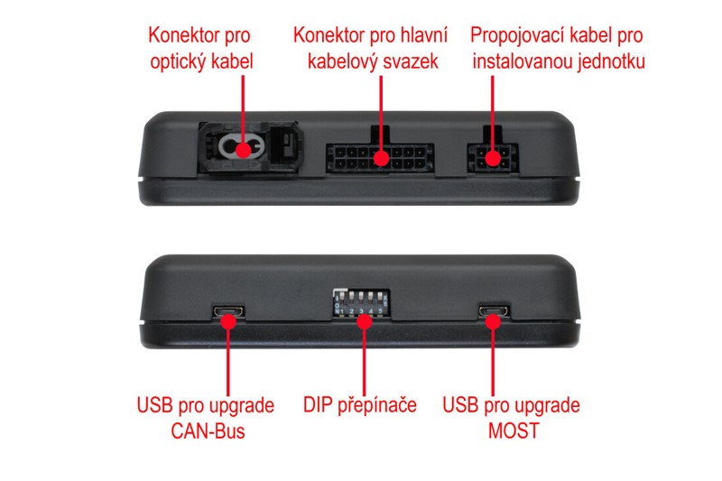 - umožňuje připojení k OEM aktivnímu audio systému připojenému optickému kabelu (MOST)