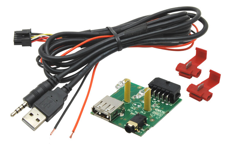Adaptér pro připojení USB a AUX signálu, nahrazuje původní konektor v automobilu při použití aftermarket (dodatečně) instalovaného autorádia.