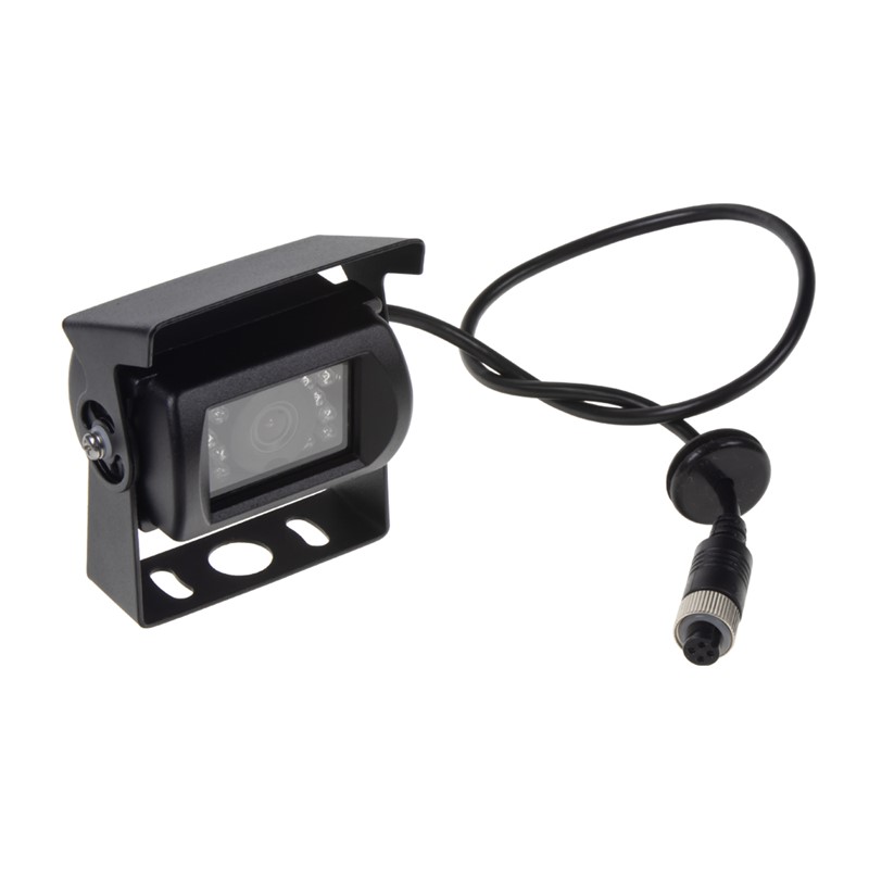 AHD 720P kamera s IR světlem a automatickým vyhříváním při poklesu teploty pod 10°C a zaklápěním, vnější, určená pro montáž především na nákladní vozy, autobusy, karavany či dodávky. Propojení 4-PINovým kabelem