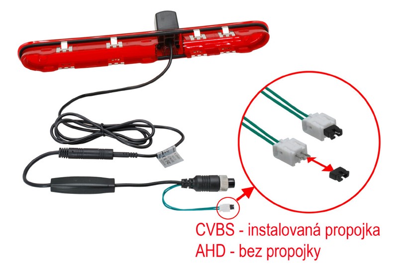 AHD / CMOS parkovací kamera integrovaná ve třetím brzdovém světle instalovaném nad zadními křídlovými.