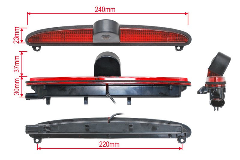 Kamera je integrována ve třetím brzdovém světle umístěném v zadních dveřích, které nahrazuje originální brzdové světlo. Světelná signalizace je zajištěna LED světlem připojeným originálním konektorem.