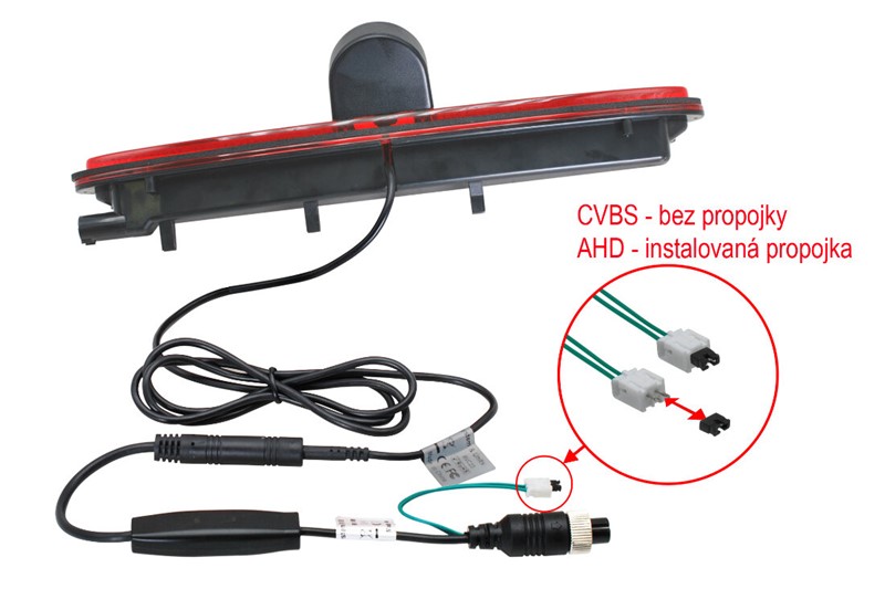 AHD / CVBS parkovací kamera integrovaná ve třetím brzdovém světle instalovaném nad zadními křídlovými.