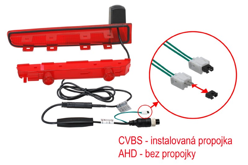 AHD / CVBS parkovací kamera integrovaná ve třetím brzdovém světle instalovaném v zadních křídlových dveřích.