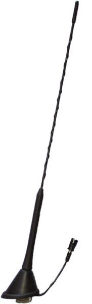 Krátký popis Aktivní střešní FLEX 60° AM-FM anténa s RAKU konektorem.   Technické parametry • pevný úhel sklonu 60° • černý laminátový prut s vnějším závitem M5 • délka 410 mm • pevná patice • montážní hloubka 14 mm • montážní otvor čtvercový 14,5x14,5 mm nebo kulatý průměr 19 mm • kabel 300 mm   Vlastnosti • napájení zesilovače antény je vedeno přímo po anténním kabelu • ve vozidle musí být instalováno originální koncernové autorádio nebo fantomový adaptér • vhodná do zadní části střechy pro většinu evropských vozidel