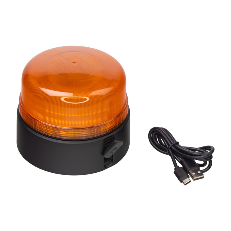 Akumulátorový nabíjecí výstražný oranžový maják s LED technologií a 2 režimy blikání. Určen pro uchycení pomocí magnetu.