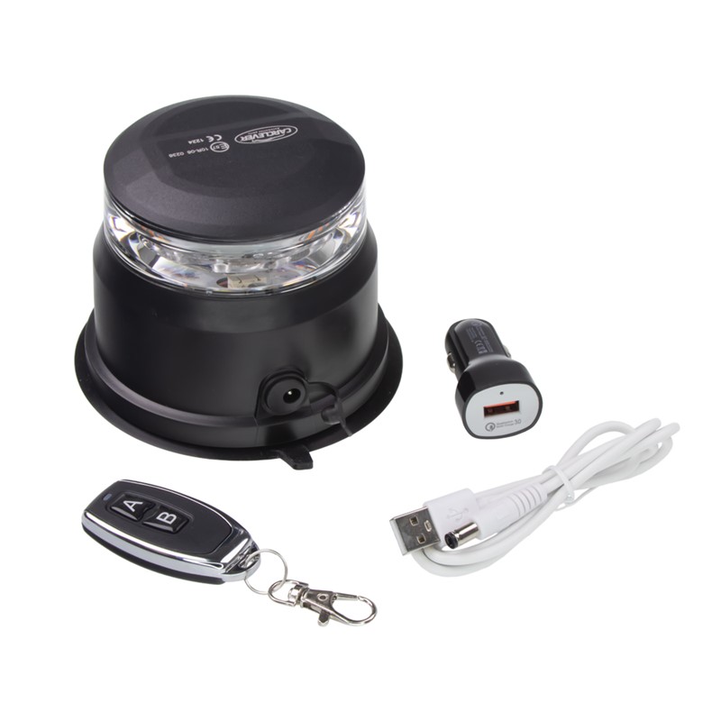 Akumulátorový nabíjecí výstražný oranžový maják s LED technologií a zábleskovým/otočným režimem. Určen pro uchycení pomocí magnetu.