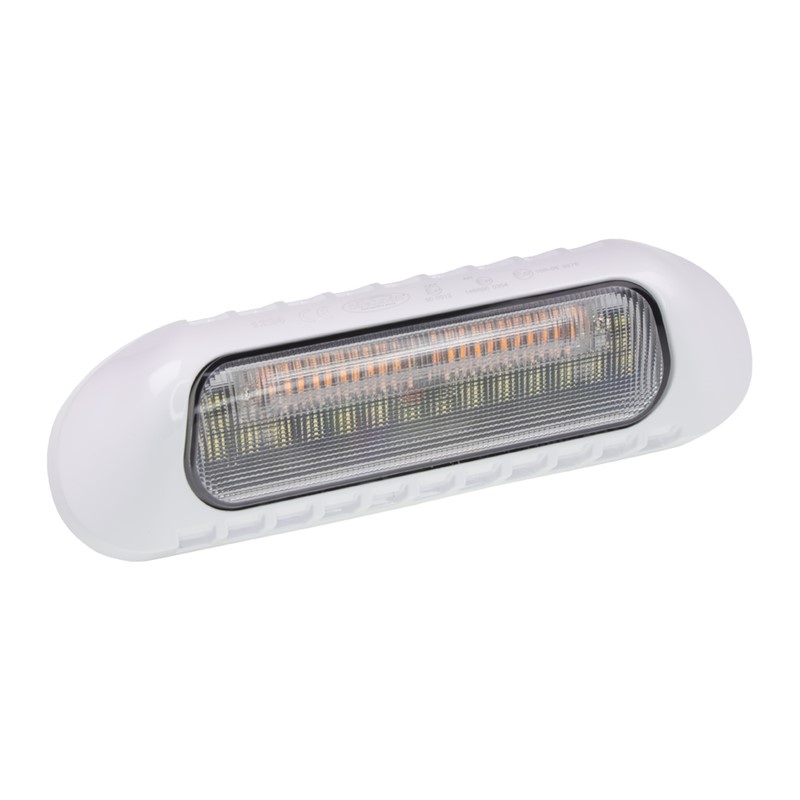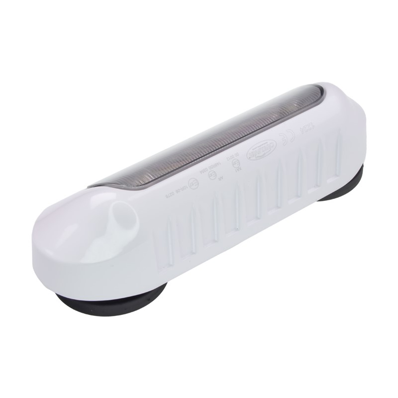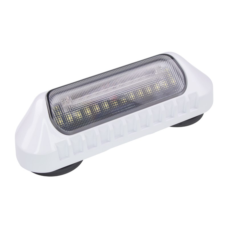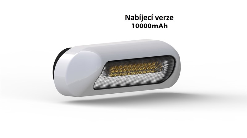 Vysoce výkonné bílé akumulátorové nabíjecí nástěnné světlo s oranžovým výstražným světlem, určené pro povrchové připevnění pomocí magnetu na stranu vozidla, především na různé pracovní stroje, sanitky, hasiče, zásahová vozidla, obytné automobily a karavany.