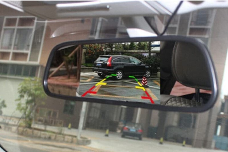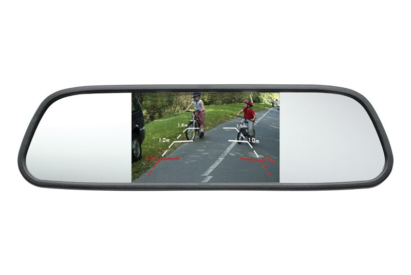 Monitor umístěný ve zpětném zrcátku slouží pro zobrazení obrazu z parkovací kamery nebo pro zobrazení obrazu DVD přehrávače.