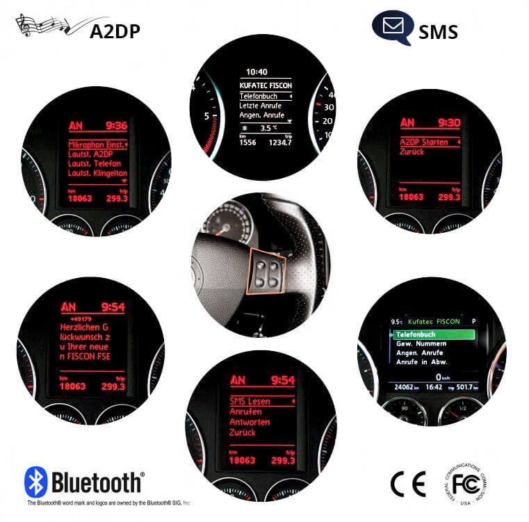 • A2DP Audiostreaming pro přehrávání hudebních souborů přes reproduktory vozidla (pokud je podporován mobilním telefonem)