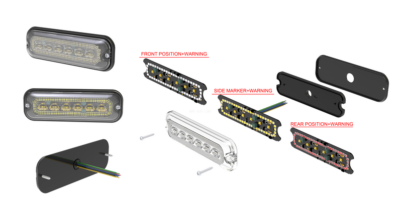 Přídavné boční obrysové (poziční) oranžové LED světlo s oranžovým vystražným světlem (predátorem), vhodné k osvětlení nákladních vozidel, kamionů, návěsů.