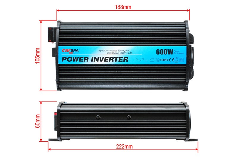 CAR-600U měnič napětí z 12V DC na 230V AC 600W trvale