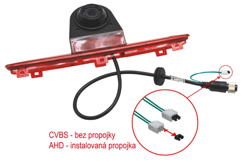 AHD / CVBS parkovací kamera integrovaná ve třetím brzdovém světle instalovaném v zadních křídlových dveřích.