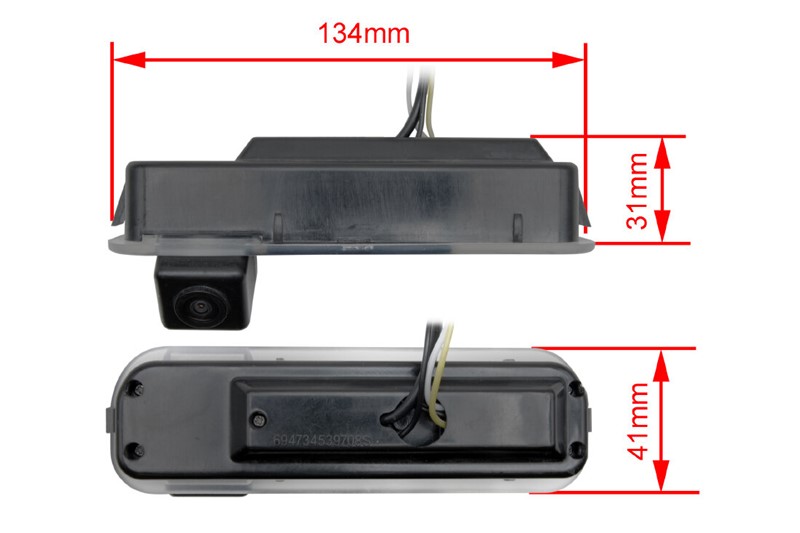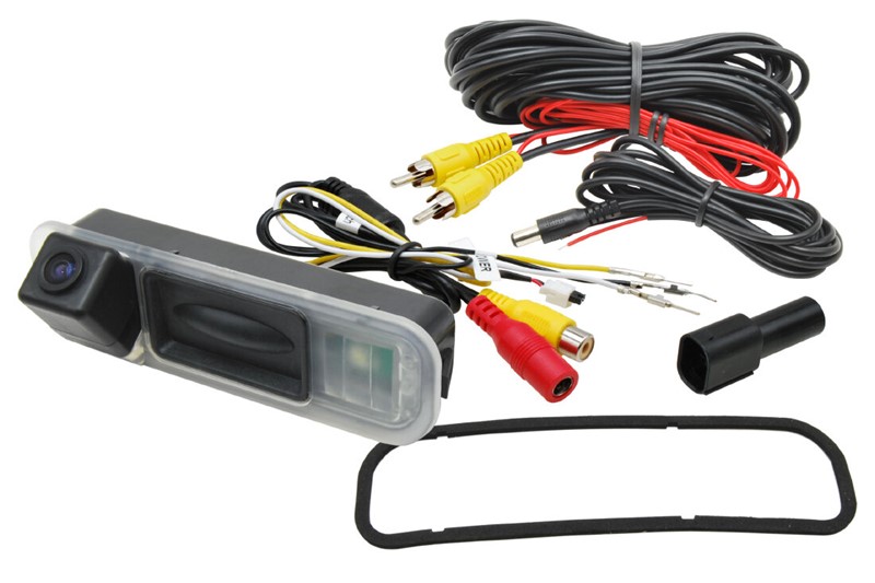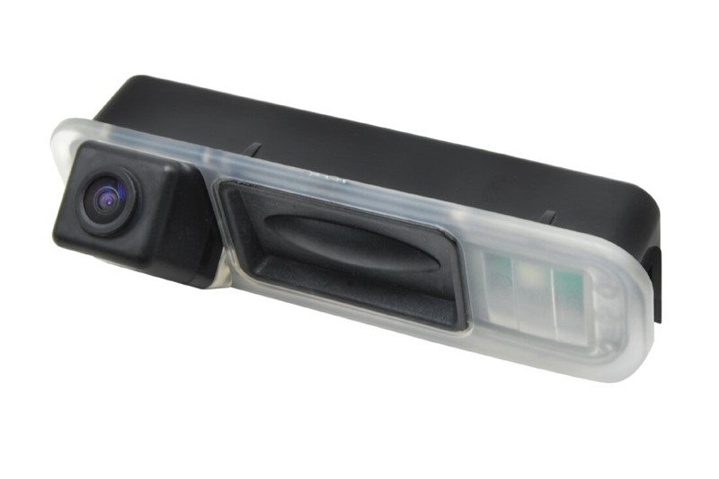 Parkovací kamera instalovaná v madle otevírání 5-tých dveří. Součástí kamery je LED světlo nahrazující původní osvětlení registrační značky.