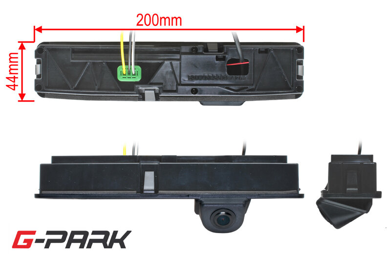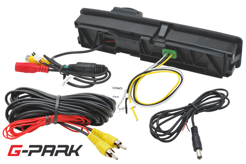 Parkovací kamera instalovaná v madle otevírání zavazadlového prostoru. Součástí kamery je LED světlo nahrazující původní osvětlení registrační značky.
