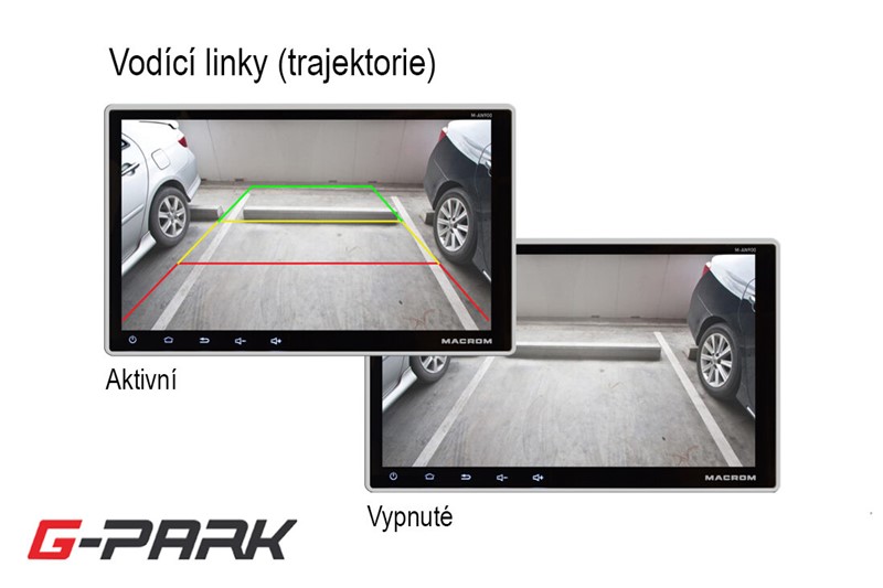 - zobrazuje pomocné trajektorie (vodicí linek) na monitoru pro orientaci při parkování (možnost vypnutí této funkce)