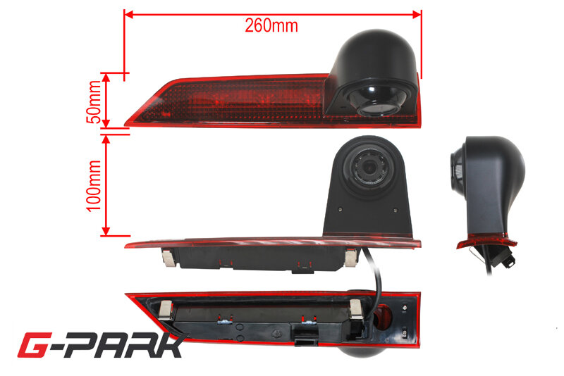 Kamera je integrována ve třetím brzdovém světle umístěném v zadních dveřích, které nahrazuje originální brzdové světlo. Světelná signalizace je zajištěna vestavěným LED světlem. Konektor pro napájení brzdového světla odpovídá originálnímu konektoru v automobilu. Sklon a úhel pohledu kamery je možné regulovat.