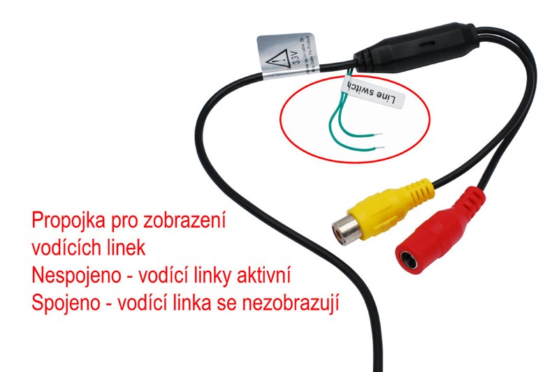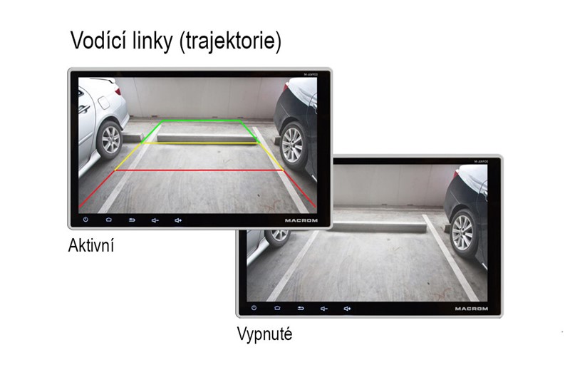 Kamera umožňuje zobrazení nebo skrytí trajektorií (vodících linek). Funkce je aktivována při zasunuté propojce v kabelovém svazku u kamery.