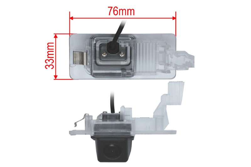 CCD parkovací kamera pro instalaci na místo osvětlení zadní registrační značky. Součástí kamery není držák patice pro umístění žárovky. Použijte držák z původního světla pro registrační značku.