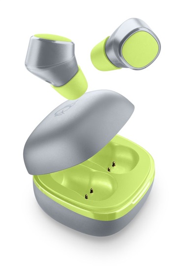 Krátký popis True Wireless sluchátka Cellularline Evade s dobíjecím pouzdrem, limetková
