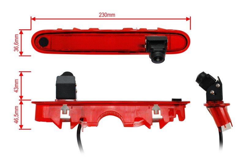 AHD / CVBS zadní parkovací kamera integrovaná ve třetím brzdovém světle instalovaném v zadních křídlových nebo výklopných dveřích.