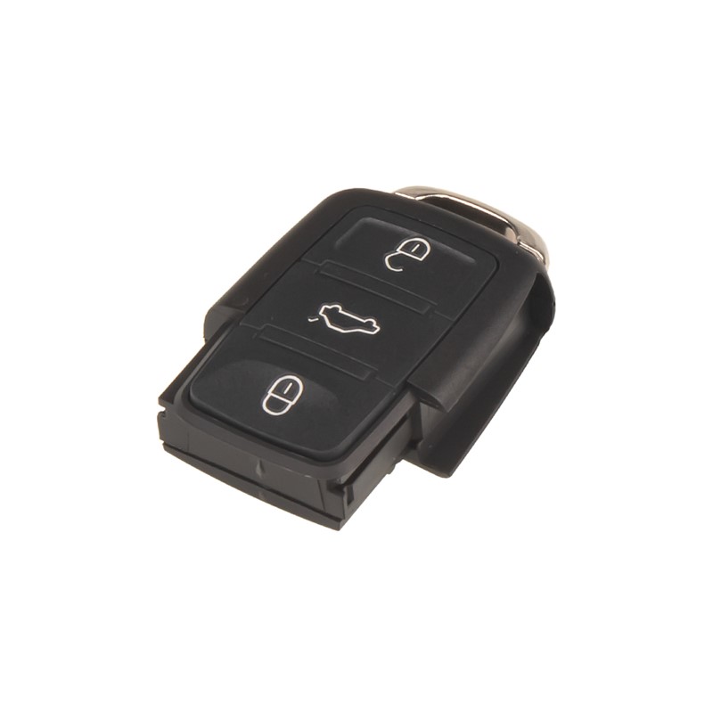 Náhradní dálkový ovladač centrálního zamykání do vystřelovacího klíče pro vozy koncernu VW. Dálkový ovladač je se třemi tlačítky. Dálkové ovládání je třeba spárovat s komfortní jednotkou vozu.