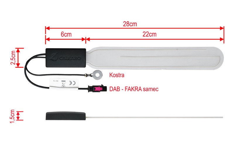 Vnitřní anténa lepící na sklo pro příjem digitálního radiového vysílání DAB a DAB+.  Anténa s minimálními rozměry je na průhledné samolepící folii, z toho důvodu nezabraňuje výhledu z automobilu. Zesilovač s nízkým šumem zajišťuje kvalitní příjem.