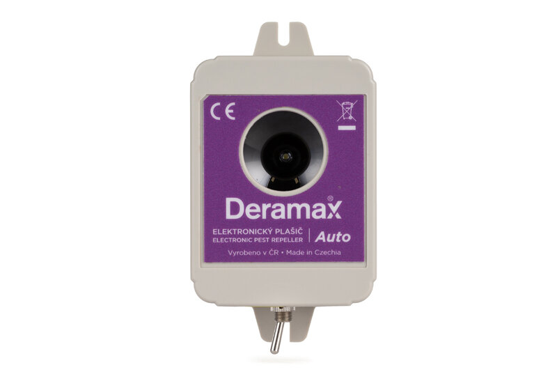 Deramax-Auto je plašič kun a hlodavců určený pro ochranu automobilů a pomáhá řešit problémy, které ve vozidlech na kabeláži, polstrech apod. způsobují kuny a myši. Přístroj je běžně využívaný také pro ochranu zemědělských strojů, karavanů, lodí apod. Plašič Deramax-Auto generuje silné ultrazvukové pulzy specifického tvaru, které jsou pro kuny a hlodavce velmi nepříjemné, takže po krátkém čase chráněný prostor opouští.