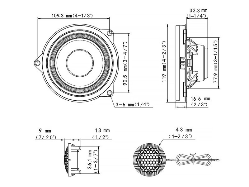 • - Velikost výškového reproduktoru: 2,5 cm (1")