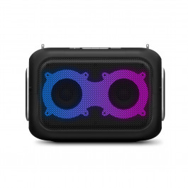 Karaoke automat s výkonem 60W, IPX4 a výdrží baterie až 8 hodin. LED světla a dva bezdrátové mikrofony , Bluetooth verze 5.4, Dosah Bluetooth 20 m, Systém nabíjení USB typu C, Doba nabíjení 3 h, Kompatibilita: PC Windows / Chytrý telefon / Tablet.