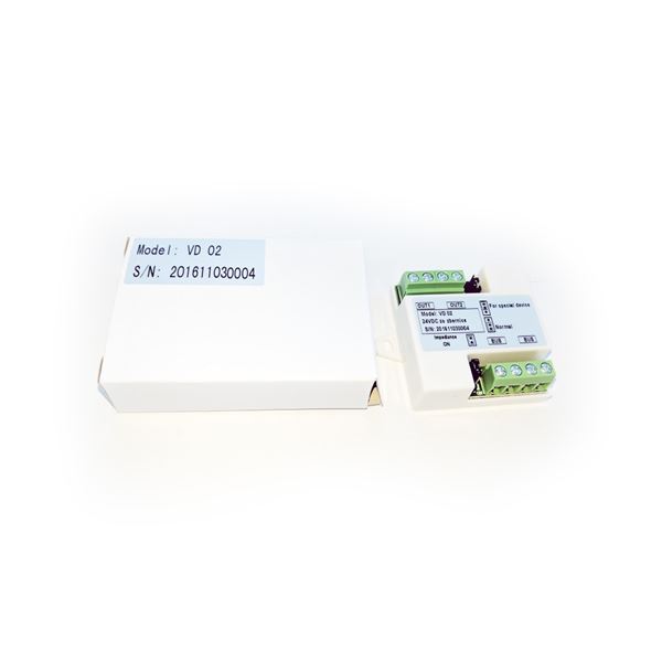 Videodistributor sběrnice, 2x výstup pro odbočení sběrnice a zapojení monitorů / audio telefonů / dveřních jednotek do hvězdy (na 1 ks VD 02 nelze připojit kombinace uvedených komponentů), rozměry 45 x 45 x 16 mm, vnitřní použití