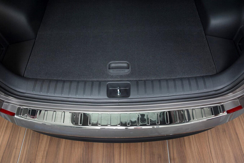 Nerezová ochranná lišta zavazadlového prostoru chrání váš automobil efektivně proti promáčknutí a poškrábání během nakládky a vykládky. Jeho tvar, stejně jako žebrový vzor na povrchu, je vyroben tak, aby dokonale odpovídal designu Hyundai Tucson. A pokud budete chtít vyměnit chránič po intenzivním používání, je to také možné. Bude to mnohem levnější, než přelakování nárazníku.