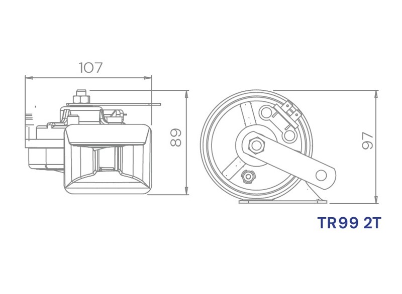 Šnekový klakson TR99 byl navržen a vyvinut společností FIAMM SpA. Je vhodný především pro montáž na nákladní automobily a průmyslová vozidla. Sada Aftermarket, dodávaná v FIAMM značkové krabičce, je doplněna upevňovacím materiálem a spínacím relé. TR99 má standardní elektrické připojení pomocí dvou kontaktů 6,3 mm a je dodáván s jedním tónem: nízký.