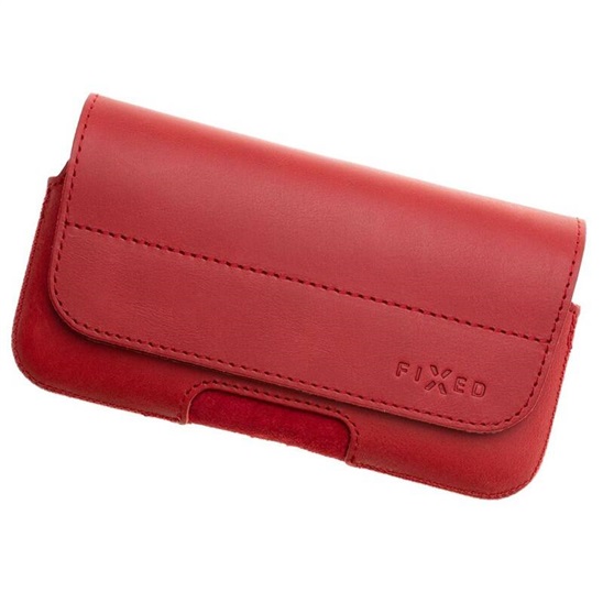 Krátký popis Horizontální kožené pouzdro FIXED Posh se zavíráním, velikost 6XL+, červené