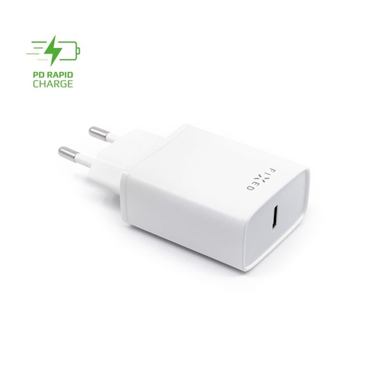 Síťová nabíječka FIXED díky USB-C portu s podporou Power Delivery dokáže doplnit energii pro kompatibilní zařízení výkonem až 18W a výrazně tak zkrátí dobu nabíjení oproti klasickým nabíjecím adaptérům.