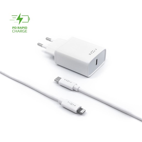 Set síťové nabíječky FIXED a USB-C kabelu se postará o rychlé a bezpečné nabíjení vašeho iPhonu, iPadu nebo další elektroniky s Lightning konektorem. Díky USB-C portu s podporou PD dokáže doplnit energii s celkovým výkonem až 18W.