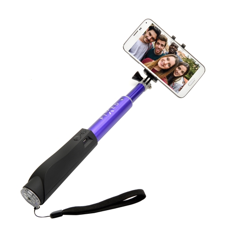 Krátký popis Teleskopický selfie stick FIXED v luxusním hliníkovém provedení s BT spouští, modrá