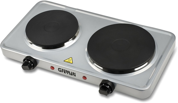 průměr velké plotýnky: 18,5 cm, průměr malé plotýnky: 15,5 cm, 5 stupňů nastavení výkonu, litinové plotýnky, oddělené zapínání, protiskluzové nožičky, výkon: 2500 W (1500 W + 1000 W)