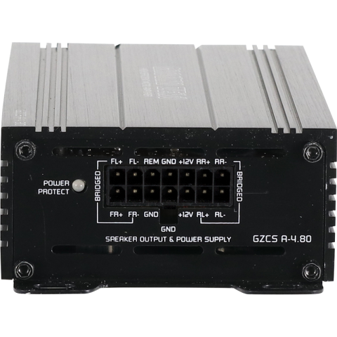 GZCS A-4.80  4-kanálový mini ​​zesilovač třídy D s integrovanou aktivní výhybkou a funkcí automatického zapnutíHL level input / vysokoúrovňový vstupISO příslušenství je k dispozici samostatněPřemostitelný pro použití subwooferuAktivní výhybkaKanály 60 W RMSVýstupní výkon (@ 2 Ω)    4x 80 W RMSmůstek (@ 4 Ω)              2 x 160 W RMS můstek (@ 4 Ω)                2 x 200 W max (10% THD+N)max. Výstupní výkon      2x 200 WattůFrekvenční odezva         10 Hz - 35 kHz 20 Hz - 300 Hz (12 dB/oct.)LPF 2 Hz/300 Hz (1.20 Hz - 300 Hz) vstupní citlivost 250mV - 7.5 Vpojistka         | 82 x 40 x 151/171 mm