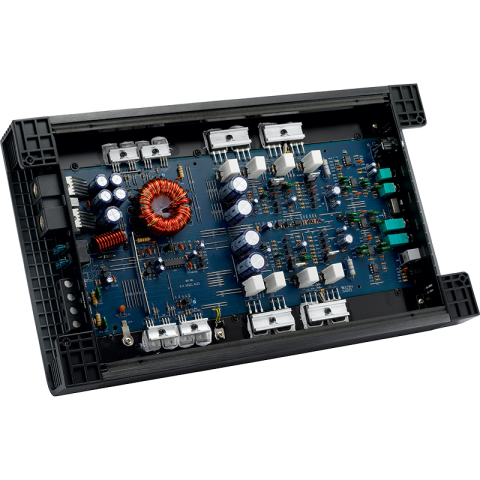 Krátký popis 2-kanálový zesilovač s obvodem třídy A/B, integrovanou aktivní výhybkou a účinným eloxovaným chladič