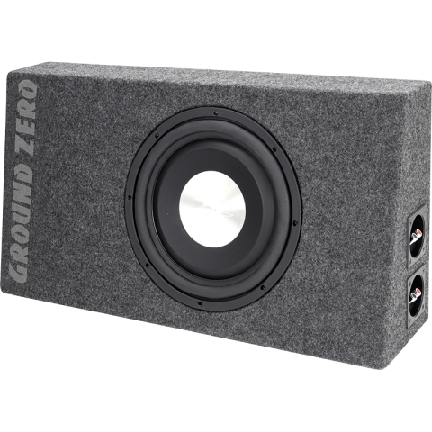 30cm flat subwooferbox s bastunelem 30cm flat woofer GZTW 12Fimpedance: 2x2 Ohmvýkon:          350 W RMS ,5 litrů, rozměry:        72.5 x 38.5 x 11.0 / 19.5 cm- push terminál